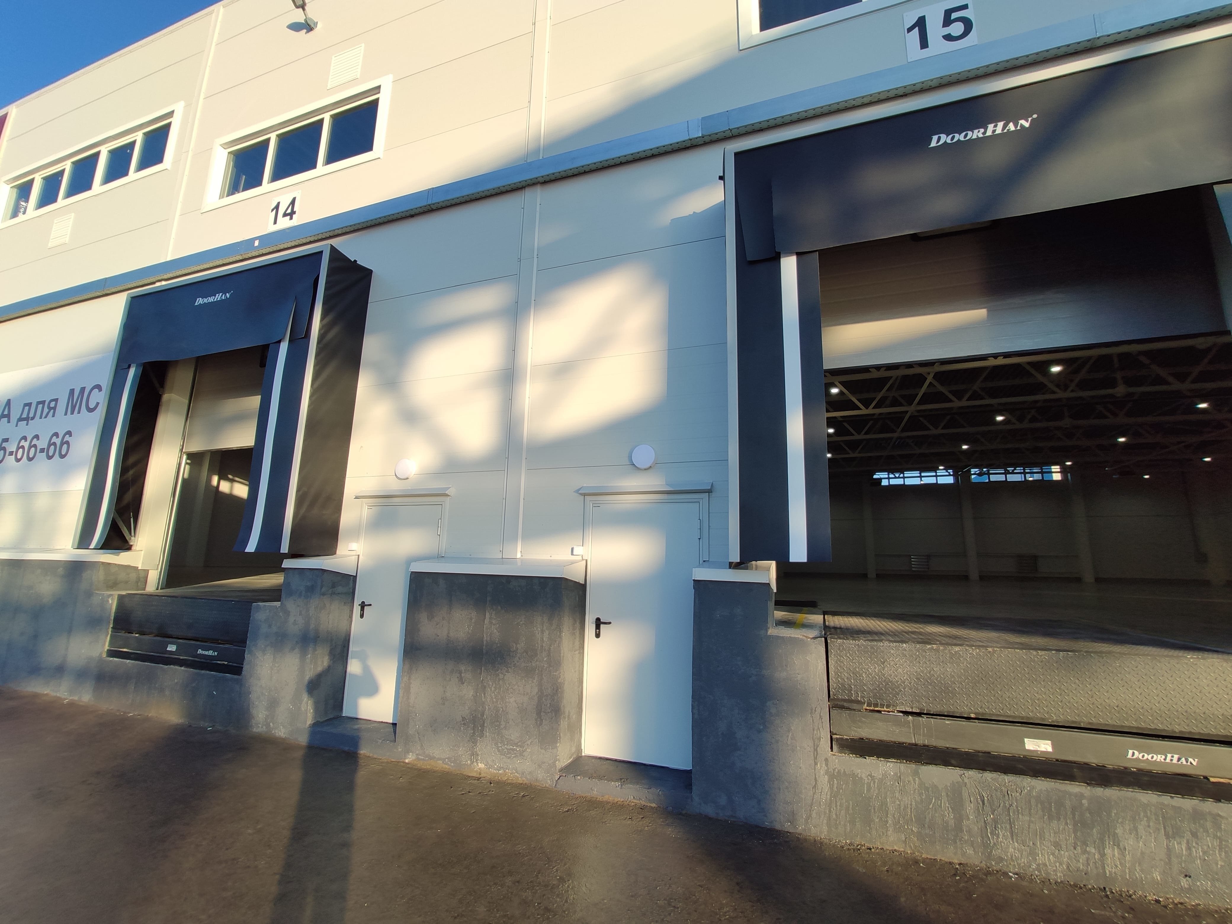 • Двое секционных ворот на один блок на отм. +1,200 м, габариты ворот – 3,2 х 3,0 м (В х Ш), с доклевеллерами и докшелтерами